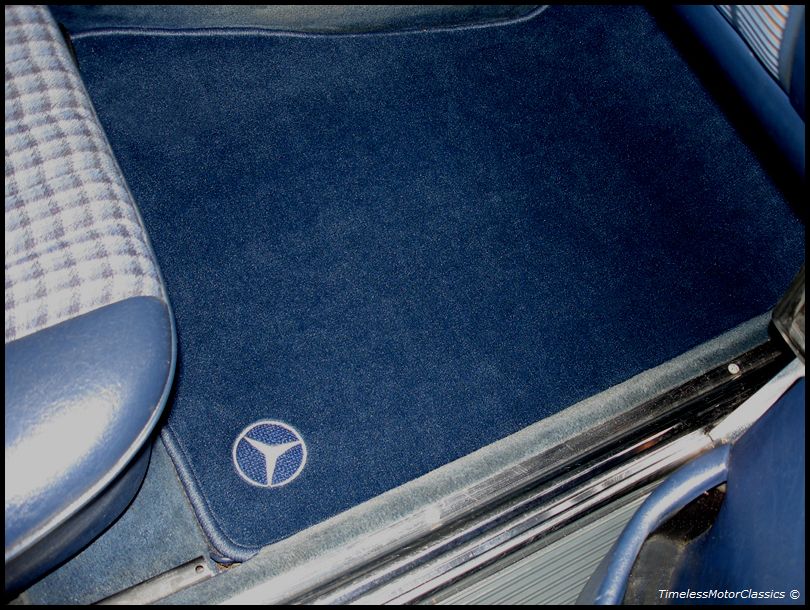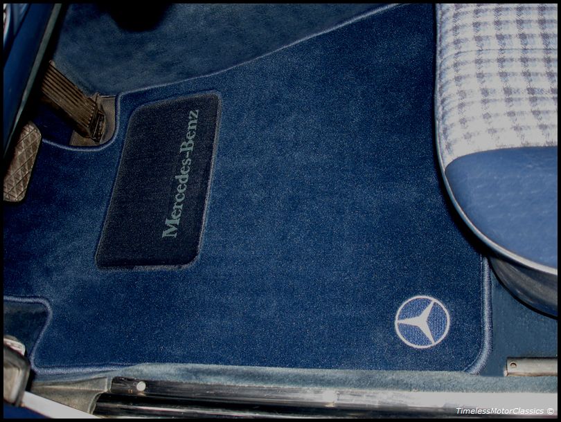 12: Just as the exterior, the interior on this car is exceptionally well preserved. It is all original with minimal signs of wear. Even the dash board is in perfect shape without any cracks. This is quite remarkable since 107 dashes are quite prone to cracks and since this car has spent all its life in warm climates. The rare Zebrano wood is in very good condition as well without the typical fading, warping or cracking. As you can see in the pictures both seats and door panels are very well preserved. The carpet is in good shape but shows some sun fading/discoloration which is pretty normal for an almost 30 year old car. The front top floor mats are fairly new and show beautifully. The same goes for the dark blue soft top and Hard Top. Both are in beautiful condition with the soft top having been replaced couple of years ago. Even the sun visors are in brand new condition. They were also recently replaced with very expensive factory visors.